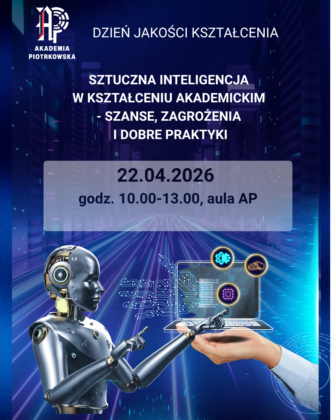 Akademia Piotrkowska w Piotrkowie Trybunalskim organizuje Dzień Jakości Kształcenia, poświęcony roli sztucznej inteligencji w edukacji akademickiej.
